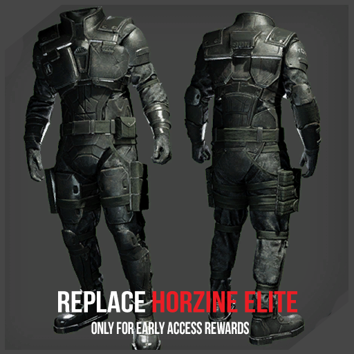 The elite variants of the horzine security armor and the horzine 9mm pistol skins are loyalty rewards that are earned by everyone who plays in early access though other versions will be available at a later date as part of a cosmetic bundle in the game store.