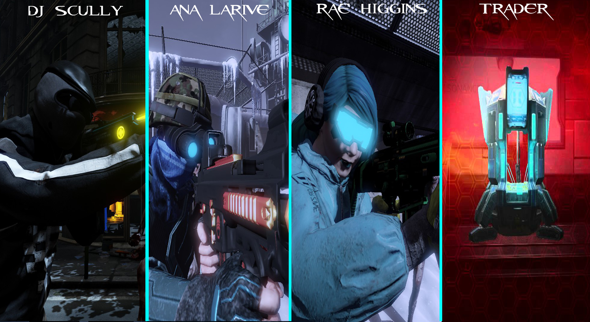 The trader is a mysterious woman of undisclosed name and origin who can be found in various fortified locations selling guns ammunition and other equipment to the players in exchange for money obtained from killing specimens she sends audio messages to the players notifying them of the current status of the shop when its opening closing and if it will be open again.